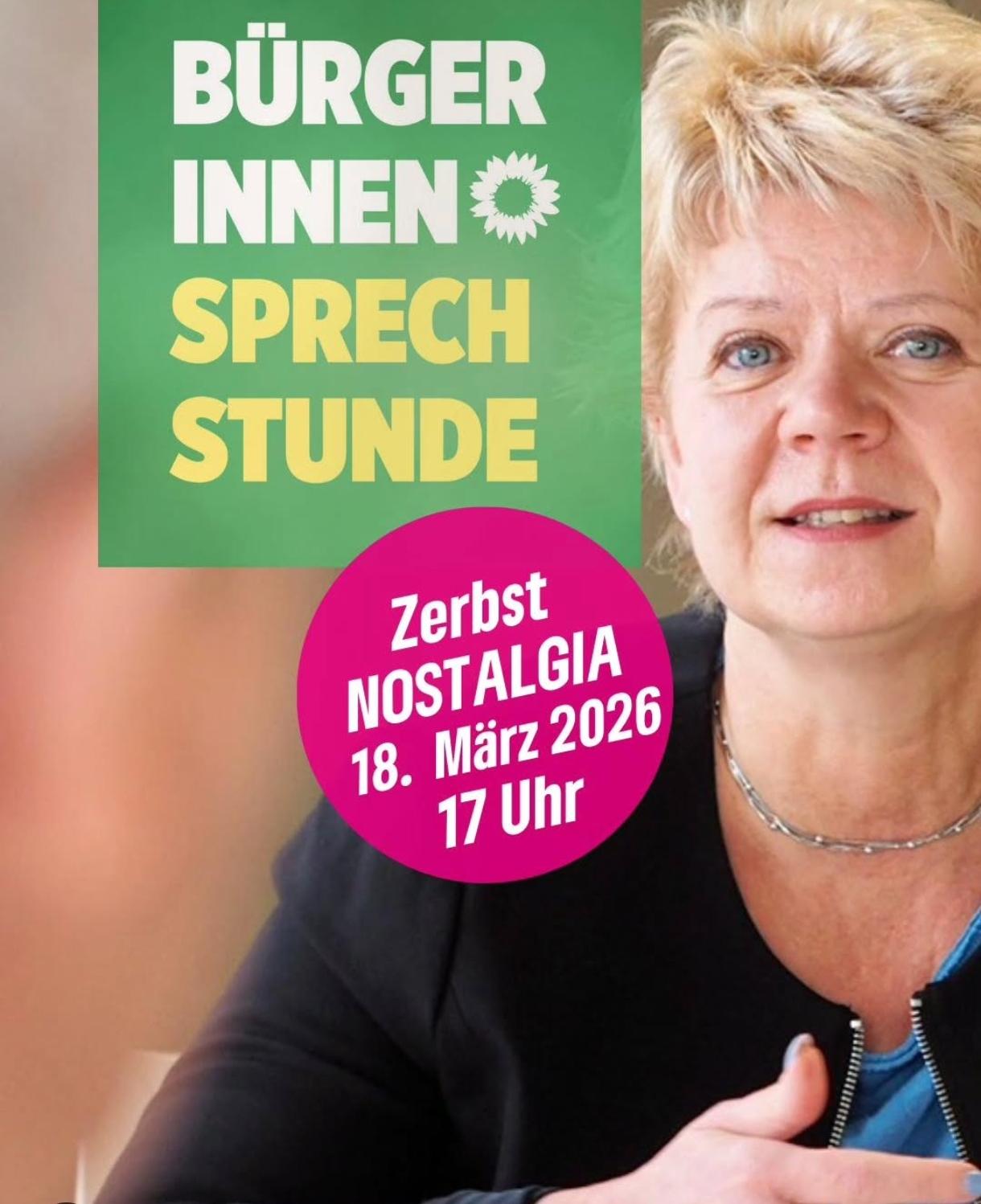 Bürger*innensprechstunde mit Conny Lüddemann in Zerbst 16. März 202616. März 2026 Die Landtagsabgeordnete und Fraktionsvorsitzende von Bündnis 90/Die Grünen im Landtag Sachsen-Anhalt, Conny Lüddemann, lädt am Mittwoch, 18. März 2026, zu einer Bürger*innensprechstunde nach Zerbst ein. Zwischen 17:00 und 18:30 Uhr haben Bürgerinnen und Bürger im Restaurant Nostalgia (Dessauer Straße 98, Zerbst) die Gelegenheit, mit ihr direkt ins Gespräch zu kommen, Fragen zu stellen und Anliegen aus der Region einzubringen. „Ich möchte gern mit den Menschen in der Region ins Gespräch kommen, möchte gern wissen was die Leute bewegt und was sie von der Landespolitik erwarten. Ich freue mich auf interessante Gespräche.“ Die Bürger*innensprechstunde bietet eine gute Gelegenheit, Themen aus Zerbst und der Umgebung direkt mit der Landtagsabgeordneten zu besprechen. Alle Interessierten sind herzlich eingeladen vorbeizukommen. Termin im Überblick📅 Mittwoch, 18. März 2026🕔 17:00 – 18:30 Uhr📍 Restaurant NostalgiaDessauer Straße 9839261 Zerbst/Anhalt